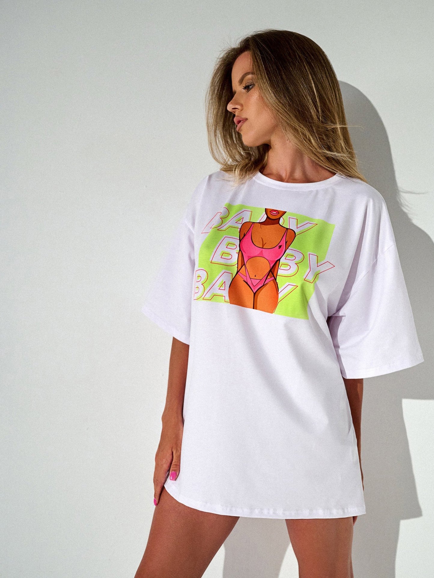 Classic basic sports t-shirt from Bona Fide! Gentle women's T-shirt with long sleeves will emphasize femininity, elegance and your unique style. The sports jersey is made of wear-resistant Italian fabric. The material stretches well, does not fade after washing and gives freedom of movement. The oversized T-shirt is printed on high-tech equipment using high-quality inks, so the anime print does not fade even after years. Oversized T-shirt with print is made of polyester. The fabric is elastic, removes excess moisture, dries quickly and allows the skin to breathe. Sportswear for fitness women's training from Bona Fide for sports, crossfit training, running, cycling, gym, yoga, dance, gymnastics, tennis and basketball games. Women's clothing for sports and every day. And also for leisure, everyday life and travel. BonaFide creates exclusive sports collections that will impress any fashionista.