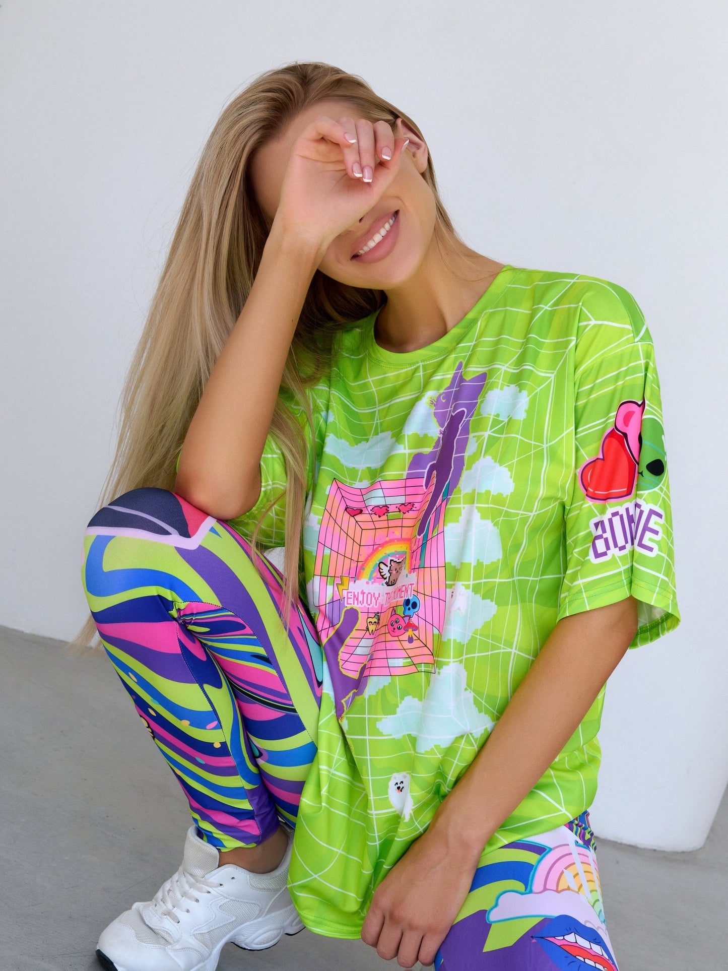 Gentle women's oversize T-shirt with long sleeves will emphasize femininity, elegance and your unique style. The material stretches well, does not fade after washing and gives freedom of movement. The oversized T-shirt is printed on high-tech equipment using high-quality inks, so the print does not fade even after years. The fabric is elastic, removes excess moisture, dries quickly and allows the skin to breathe.